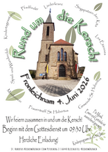 Anschließend sind Sie herzlich eingeladen zu unserem Gemeindefest „Rund um die Kersch“. Der Vorplatz wird von ortsansässigen Vereinen und vielen Helfern mit herzhaftem Essen, gekühlten Getränken, Kaffee und Kuchen, guter Laune und Musik mit Leben erfüllt. Für die Kinder gibt es ab 12:30 Uhr ein Kinderprogramm. Die Gemeinde St. Hubertus und die Pfarrei Heilige Familie Blieskastel laden auch im Namen der Vereine und aller