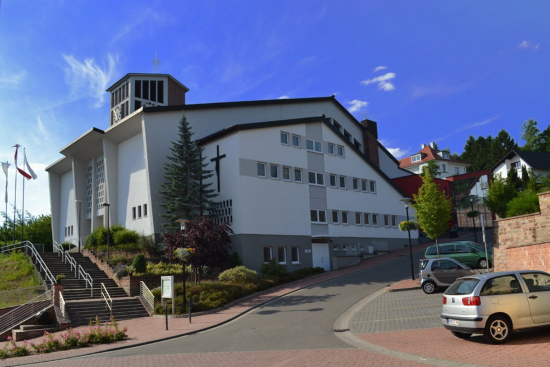In den Jahren 1958 bis 1960 wurde nach Plänen des Speyerer Diözesan-Baurates Wilhelm Schulte jun. das heutige Kirchengebäude errichtet und am 25. September 1960 eingeweiht. Am Entwurf der Kirche war neben Schulte auch der Architekt Helfrich beteiligt.